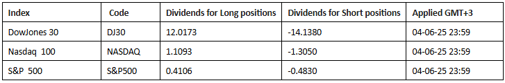 Dividend distributions Wednesday, June 4, 2025